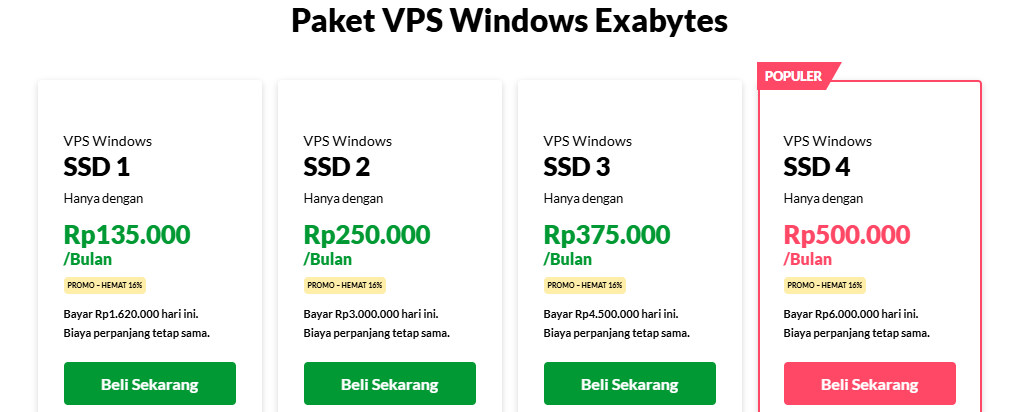 Lihat dan bandingkan semua pilihan paketnya langsung di halaman https://www.exabytes.co.id/server/vps-windows-ssd.
